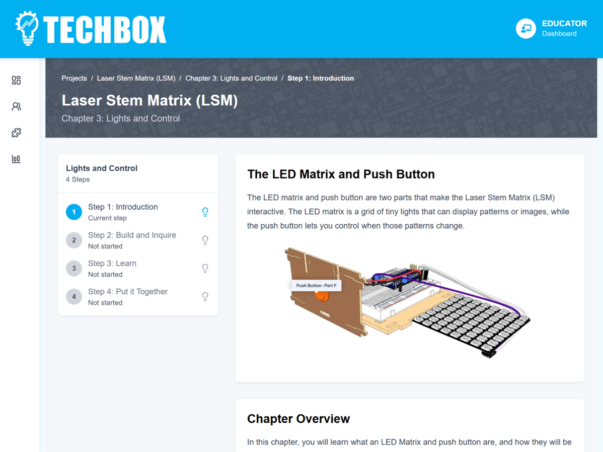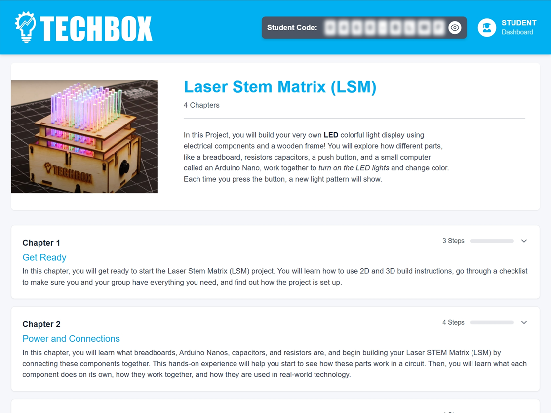 Easily launch projects, monitor check‑ins, and step in where it matters. TechBox was built so educators can spend their time facilitating learning—not troubleshooting.